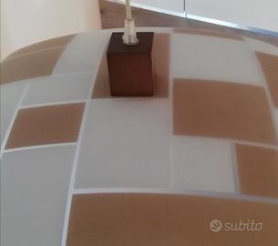 Vendo lampadario stile moderno di forma quadrata curvata in vetro, con inserto decorativo in legno e terminale cromato (misura 45cmx45cm)