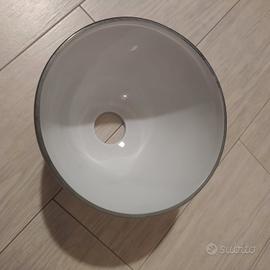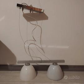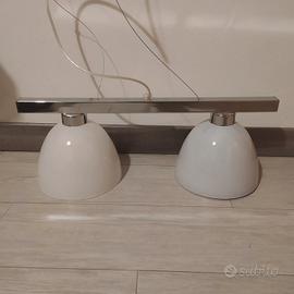 vendo lampadario in stile moderne, con due porta lampadine, internamente uno di colore bianco e uno viola. Misure 50x82
