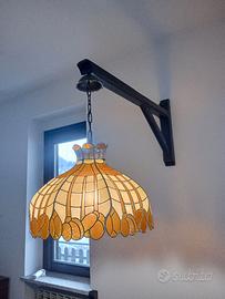Vendo lampadario in stile Tiffany con struttura in vetro decorato e supporto a parete in legno massello. Design caldo e vintage, ideale per ambienti rustici, taverne o case di montagna. La luce è molto piacevole e crea un’atmosfera accogliente. Il supporto in legno con braccio e catena lo rende particolare e diverso dai classici lampadari a soffitto. Chiedo la cortesia di contattarmi solo se REALMENTE interessati. Scrivere su whatsapp al 3484431777