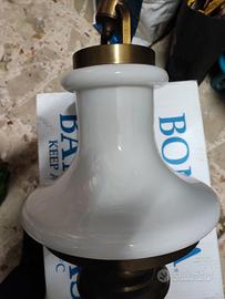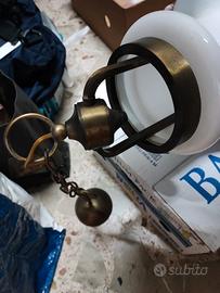 lampadario stile vecchia Marina. in ottone con opalina bianca. con la catena arriva a un metro.