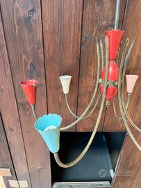 Strepitoso lampadario Stilnovo anni 50', Modernariato/Vintage, tutto completamente ancora originale con sfumature e colori meravigliosi, struttura in ottone, pezzo ormai unico nel suo genere