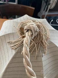 Lampadario in stoffa, diametro circa 60/70 cm, anni 70, con nappe e cordoni integri, color beige panna, da pulire, strappato in un angolo come foto. Prezzo già comprensivo dei 10€ della spedizione.