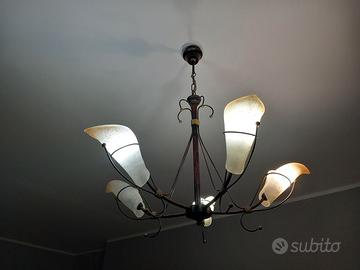 Lampadario funzionante, 5 luci con coppe in vetro sabbiato, presente anche coppa di ricambio. Vendo per cambio arredamento.
