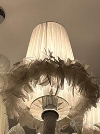 Caratterizzato da raffinati copriluce plissettati decorati con piume, dona un tocco chic e originale all’ambiente, creando un’atmosfera calda e accogliente.