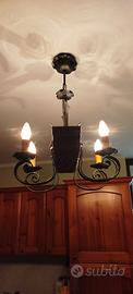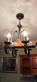 Lampadario per tavernetta in legno e ferro a 4 luci, come in foto, ritiro a carico dell' acquirente