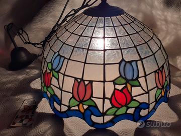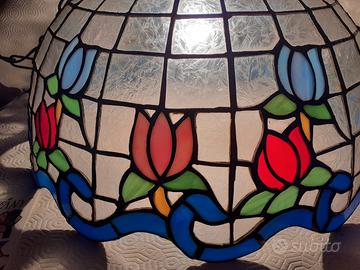 vendo lampadario Tiffany diametro 40 (8 file vetri)molto molto luminoso. Tenuto benissimo ,come appena acquistato in negozio.No vetri rotti,crepati o sostituiti,saldature a piombo interne ed esterne originali nn rovinate .Attacco x lampadina E27 (filetto grande)