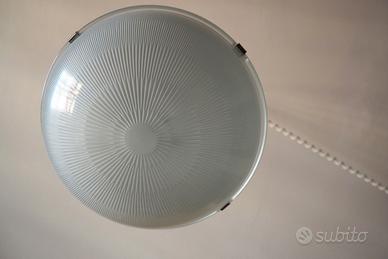 Lampadario Tito Agnoli per Oluce modello 4409 del 1958. Diametro diffusore 30 cm, altezza corpo 32 cm, peso 6 kg.