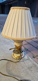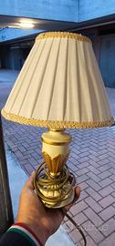 Vendo lampadario con cinque braccia in legno e decorazioni color oro. A corredo, vendo lampada da tavolo con le medesime qualità.