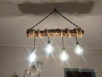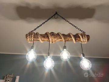 Vendo lampadario fatto a mano pezzo unico di vero legno si vende come in foto con lampade grosse