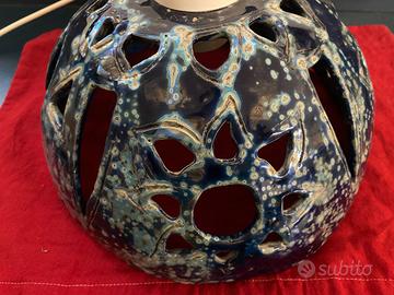 Bellissimo lampadario traforato come da foto, diametro cm 28, altezza cm 13 (misure riferite alla sola campana).