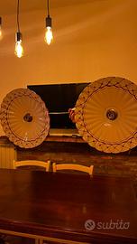 Lampadario in ottone con doppio piatto in ceramica
