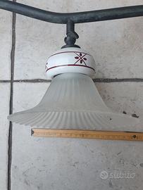 lampadario a tre luci in rame/ceramica/vetro cm 120, lapada cm 18, h 30