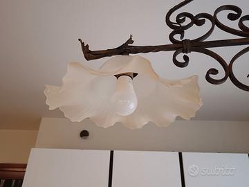 Lampadario artigianale in ferro battuto e vetro di murano. Vendesi per cambio arredamento. Perfettamente funzionante. Euro 15, 00. Zona Castelfranco Veneto.
