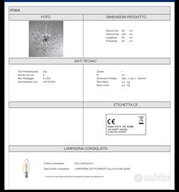 LAMPADARIO TRILLY SOSPENSIONE 6 LUCI L.60 P.60 H.160 COLORE CROMO. Caratteristiche: La sospensione Trilly a sei luci colpisce per il suo design dinamico e ricercato. I bracci sottili e intrecciati in metallo cromato si aprono a raggiera, terminando con sfere in cristallo K9 che brillano come piccole gemme. Le sei sorgenti luminose garantiscono un’ottima illuminazione, diffondendo una luce scintillante che valorizza ogni ambiente. Perfetta come lampadario da soggiorno o sala da pranzo, unisce modernità e fascino senza tempo. Misure del prodotto: 60 x 60 x 160cm (LARGHEZZA, PROFONDITÀ, ALTEZZA). Condizioni ottime. Per qualsiasi info o foto aggiuntiva non esitate a contattarmi.