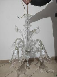 NUOVO Lampadario in vetro trasparente lavorato a 5 lampade e decorazioni di foglie e fori Con un fiore e due foglie x eventuali ricambi