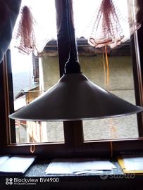 Lampadario cucina in metallo IKEA Filo allungabile. Esternamente colore alluminio e internamente bianco. Circonferenza 30,5 cm