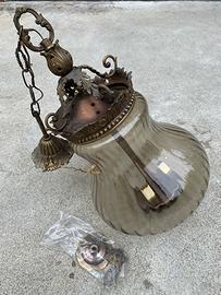Lampadario vecchio stile campana con 3 lampadine all interno della campana in vetro no rotture o crepature, funzionante.