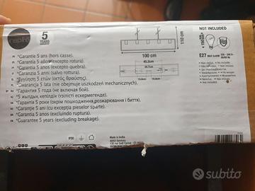Vendo per errato acquisto, lampadario NUOVO MAI USATO struttura in ferro acquistato al Leroy Merlin, 5 lampade lunghezza 100cm. Inoltre regalo assieme confezione nuova di 6 lampade effetto filamento.