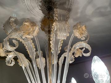 Vendo prezioso lampadario originale di Murano stile '700 veneziano in vetro e foglie in oro zecchino 24carati, del maestro Visman, sei luci. Valore di mercato euro 3000, vendo a euro 1700.