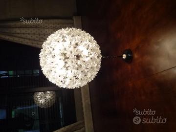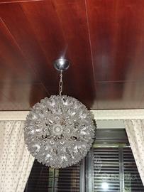 Diametro cm.60, 12 lampadine, un globo color argento sostiene le lampadine, mentre i fiori a forma di giglio che si incastrano l'uno nell'altro, creano un notevole effetto scenografico , sia quando il lampadario è spento che quando è acceso.