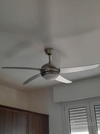 Vendo lampadario ventilatore da soffitto con pale. Il lampadario è dotato di un telecomando con diverse funzioni.