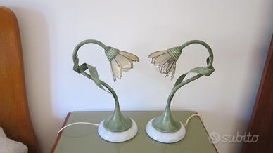 Lampadario e due lampade da comodino VERDE, leggermente danneggiato su due petali.