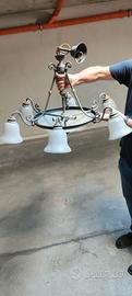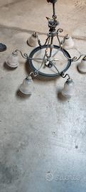 Lampadario in vetro satinato e ferro, due giri di luci uno esterno e uno interno, venivano gestiti con due interruttori separati. degli anni 90-2000 Funzionante, appena rimosso per cambio stile lampadario