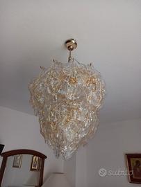 vendesi lampadario come nuovo x cambio arredamento, interamente realizzato a mano foglia su foglia, in vetro di murano, diametro 45cm e lungo dal tetto all'estremità della foglia 83cm..pagato 780 euro..è stato montato in una camera da letto solo per qualche anno, perfetto e bellissimo