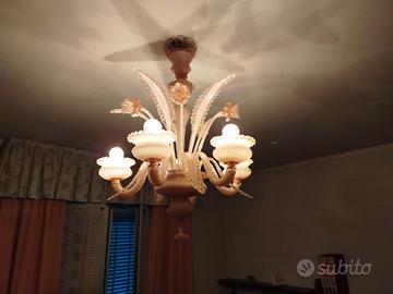 Lampadario vetro soffiato di Murano colore rosa. attacco lampadine classico E27. SOLO RITIRO ZONA MILANO