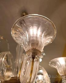 Lampadario vetro di Murano sei luci vintage colore cristallo/oro. Perfetto stato. Misure senza catena 76x76cm . Info 349 561 1398