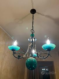 Elementi in Vetro: Il design include una sfera centrale e diffusori a forma di ciotola in vetro soffiato artigianale di Murano