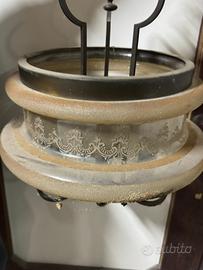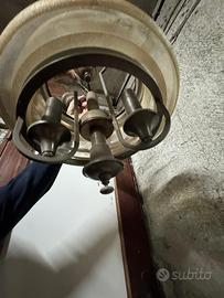 Antico lampadario a 3 luci in vetro lavorato e metallo , molto pesante , credo sia bronzo.non so se funziona