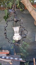 Lampadario vetro e ferro battuto