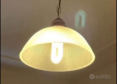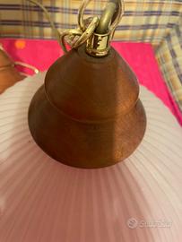 Lampadario in vetro scanalato e legno perfetto stato diametro circa 35 cm Ritiro Morlupo O Roma Parioli o spedizione
