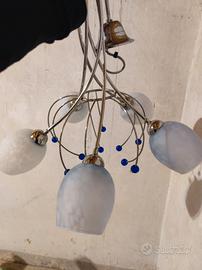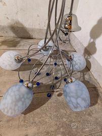 Lampadario vetro metallo blu