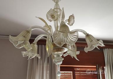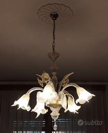 Lampadario a sospensione, da soffitto In ottime condizioni, sempre ben tenuto Con ricambio foglia e fiore In vetro dorato Paralume a fiore. Struttura a 5 bracci / 5 luci Potrebbe presentare qualche segno del tempo. 🤩 PUOI TROVARE ABBINAMENTI ED ALTRO TRA I MIEI ANNUNCI 🤩