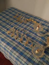 Lampadario in vetro di Murano bianco con inserti in oro zecchino diametro circa 50cm. 6 luci con 5 fiori 5 foglie alte e 6 foglie basse. Funzionante. No spedizione, ritiro in loco.