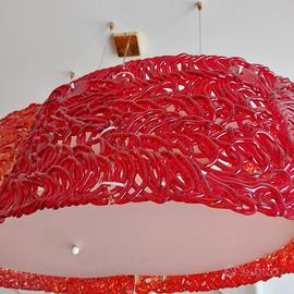 Lampadario in vetro di Murano, colore rosso perfettamente funzionante , vendo per cambio arredo