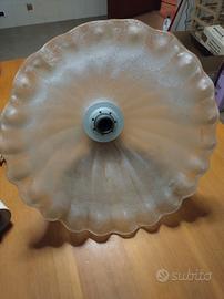 Splendido lampadario formato da uan campana di vetro ruvido. Ottima fattura, per intenditori. Inutile dire che il valore sta tutto nel vetro, potrebbe diventare quasi regale con un portalampada in ottone o bronzo. Diametro 40cm, altezza campana 30 cm circa