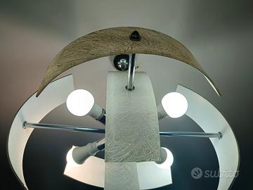 Vendo lampadario a sospensione in vetro sabbiato bianco e tortora, con moduli girevoli, attacco lampadine E14, in dotazione adattatori per lampadine E27