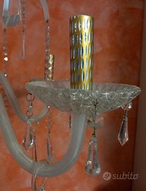 6 fuochi per mettere le lampadine e 12 altri braccietti, da cui pendono lunghe catenelle con vetri decorativi.