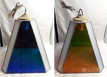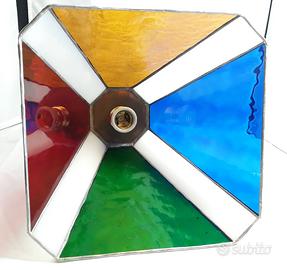 Splendido lampadario a 8 facciate in vetro cattedrale e vetro opalescente, firmato dall'artista Vito Torcolese sul lato rosso.