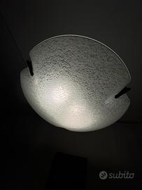 Lampadario , in ferro battuto verde con piatto in vetro .