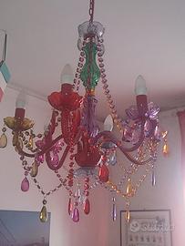 Lampadario camera bambina, in plastica colorata, 6 luci, misure diametro 60 cm altezza 70 cm.