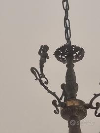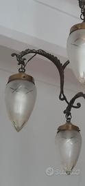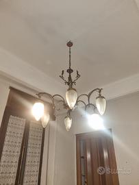 Lampadario vintage 6 luci in bronzo vetri satinati