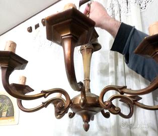 LAMPADARIO primi 900 in ottone ramato a 8 luci, portalampade a candela, perfettamente funzionante. Pronto per essere appeso!