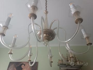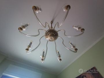 Caratteristiche: 8 punti luce con portalampada a "candela". Vetro integro e brillante, senza scheggiature evidenti.