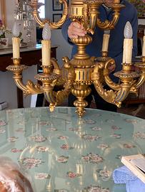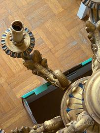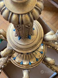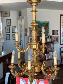 Lampadario vintage 9luci in legno foglia oro
