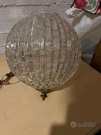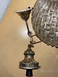 Elegante sospensione vintage (anni ’60-’70) con globo in vetro trasparente rigato che diffonde la luce con splendidi riflessi. Supporto e catena in metallo brunito decorativo, ideale per soggiorni, ingressi o cucine dallo stile retrò. In buone condizioni, con piccoli segni del tempo sulla struttura metallica e vetro perfetto. Estetica raffinata e affascinante, adatta a ambienti sofisticati.