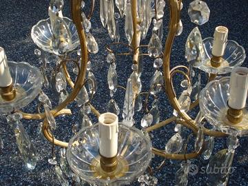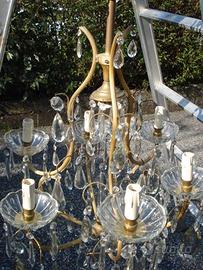vendo per cambio arredamento lampadario molto vecchio in ottone e gocce di cristallo. Ingombro: altezza ca. 90 cm - diam. ca. 55 cm. Con 6 attacchi per lampadine E14. ESCLUSIVAMENTE RITIRO SUL POSTO